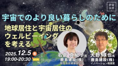宇宙大学 参加申し込み受付中🚀【宇宙大学】宇宙でのより良い暮らしのために/鹿島建設株式会社 名倉 真紀子氏・大野琢也氏