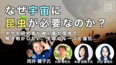 宇宙大学 【宇宙大学】宇宙×昆虫×重力:なぜ宇宙に昆虫が必要なのか?中学生研究者 岡井雛子氏が解き明かしたい、微小重力環境下での生命のルーツと進化【内閣府 宇宙スキル標準 掲載】
