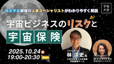 宇宙大学 参加受付中🚀【宇宙大学】宇宙ビジネスのリスクと「宇宙保険」三井住友海上火災保険(株)宇宙開発チーム 上席スペシャリスト 林 洋史氏 参加お申し込み受付中です!▶ 🚀宇宙に保険は必須って知ってましたか?盛り上がる一方の宇宙ビジネス。だけど、いざ宇宙を目指すとなると、リスクは地上とはケタ違いです。その備えとして注目されるのが「宇宙保険」。その道の第一人者が、わかりやすく解説... 2025.10.08 宇宙大学