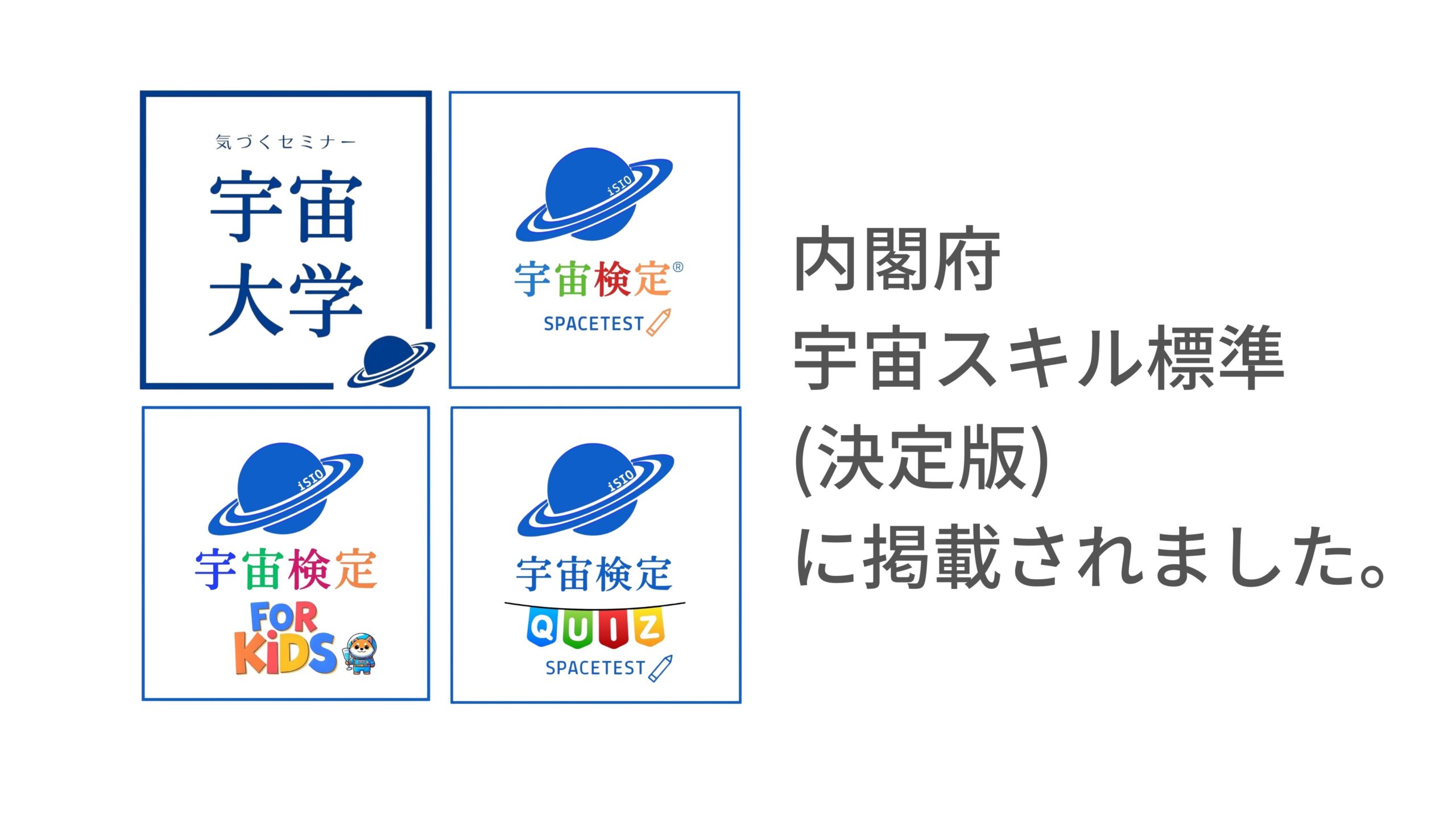 一般社団法人 宇宙産業機構が運営する宇宙大学・宇宙検定シリーズが、令和8年2月27日に公表された内閣府の「宇宙スキル標準(決定版)」に掲載されましたことをお知らせいたします。